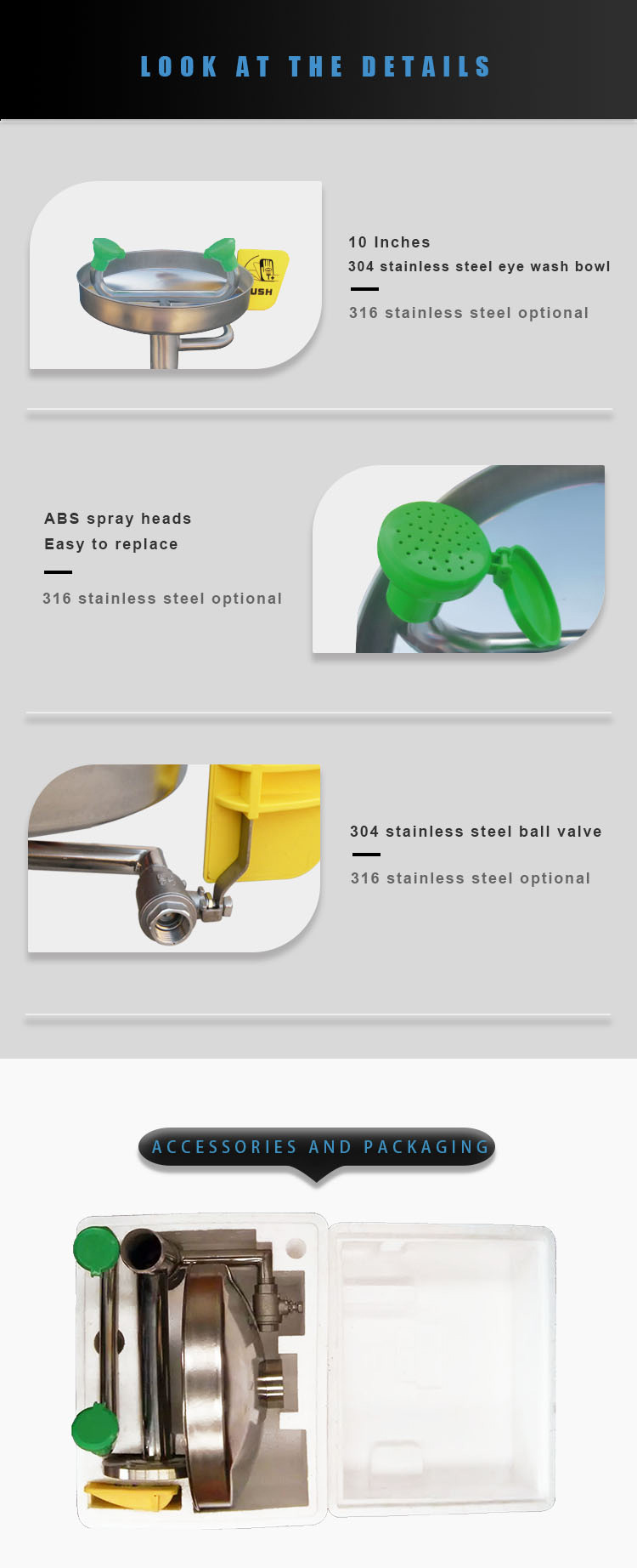 Wall Mounted Eye Wash BD-508A is used to temporarily slow down the further harm of harmful substances to the body, face and eyes of the staff when toxic and harmful substances (such as chemical liquid, etc.) are splashed on the staff’s body, face and eyes or the fire causes the staff’s clothes to catch fire. Further treatment and treatment need to follow the doctor’s guidance to avoid or reduce unnecessary accidents.